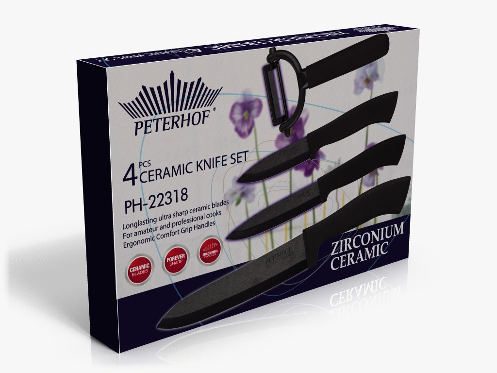 Если Вам надоели сложности при нарезке или чистке овощей, фруктов, мяса и других продуктов, Вам стоит попробовать набор керамических ножей Peterhof PH-22318.