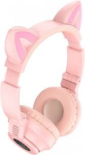 Стильні та оригінальні навушники з котячими вушками Borofone BO18. Вушка та логотип мають різнокольорову LED-підсвітку.