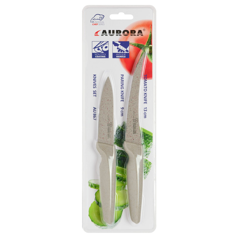 Набір ножів Aurora 867AU – практичний та стильний одночасно. Леза виготовлені із високоякісної нержавіючої сталі. Рукоятки ножів виготовлені з нековзного бакеліту, що гарантує надійне захоплення, і, як наслідок, безпеку та зручність використання.