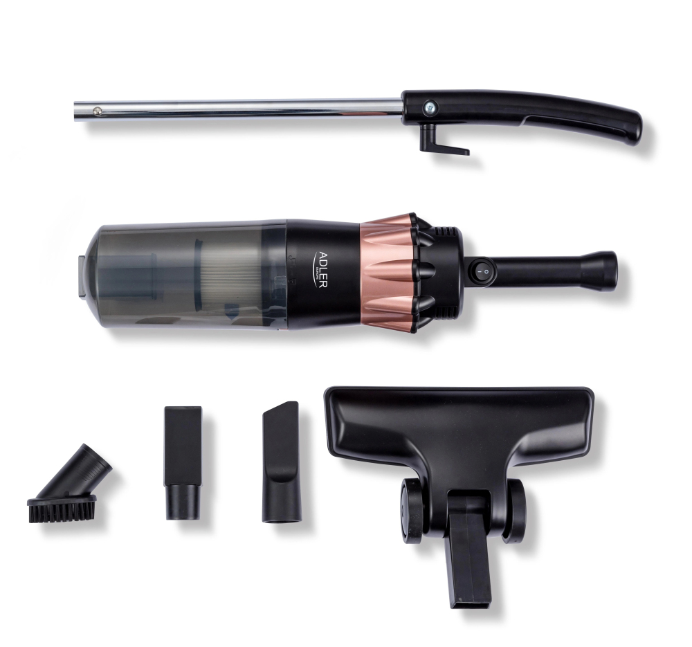 Завдяки максимальній потужності 800 Вт пилосос вирізняється високою потужністю всмоктування, що дає змогу ретельно справлятися з будь-якими забрудненнями на поверхні, що очищається. Позбавленню від бруду сприяють: щілинна насадка, оббивна насадка та насадка з гумовими коліщатками. Додатковою перевагою пристрою є великий контейнер на 0,8 л і здатний мити НЕРА-фільтр. Цю модель також вирізняє тиха робота, яка не перевищує рівня 80 дБ. Невеликі габарити пилососа, мала вага та компактна конструкція полегшують його зберігання. Класичний дизайн робить його бажаним продуктом у будь-якому інтер'єрі. Перейдіть на новий режим роботи завдяки новій моделі ручного пилососа Adler AD 7049!