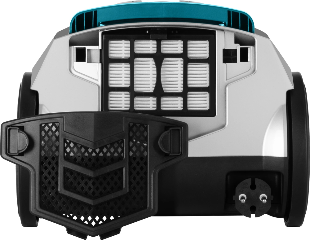 - Якісна система фільтрів (фільтр двигуна, фільтр HEPA H11, тканинний мішок), яка вловлює навіть дуже дрібні частинки пилу