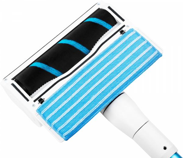 - Аксессуары: щетка для сбора пыли, вращающаяся насадка для паркета со сменной насадкой для твердого пола или ковра со светодиодной подсветкой, насадка для вытирания (напр., разлитой жидкости)