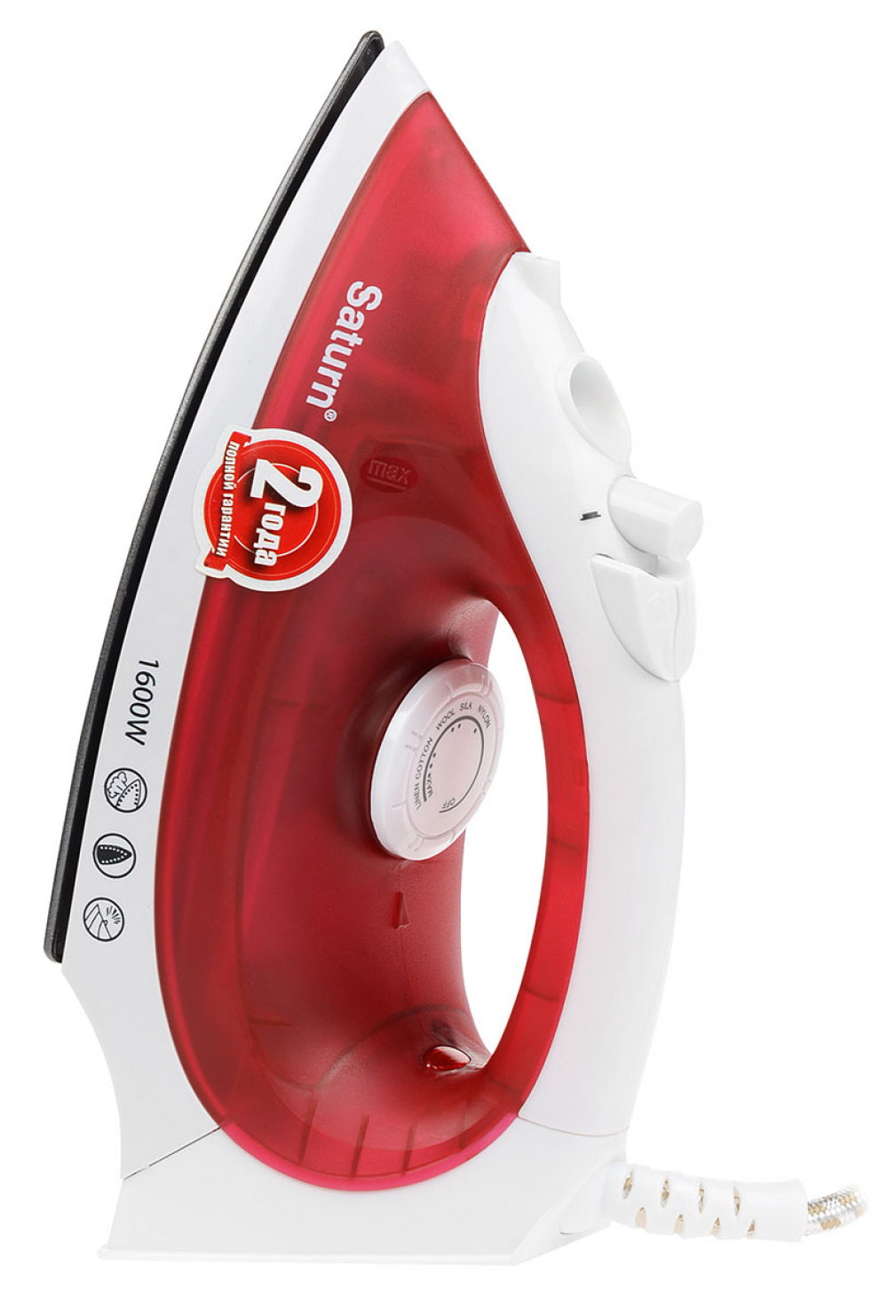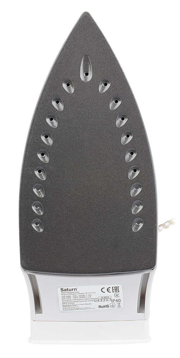 Утюг SATURN обладает такой функцией как режим интенсивной подачи пара, которая помогает разгладить даже самые сложные складки. Благодаря своей мощности ST-CC7113 может работать в режиме сухого и парового глажения, а также режиме распыления воды. Вы сможете применять разбрызгивание при любом режиме глажения, это не влияет на температуру нагрева утюга.