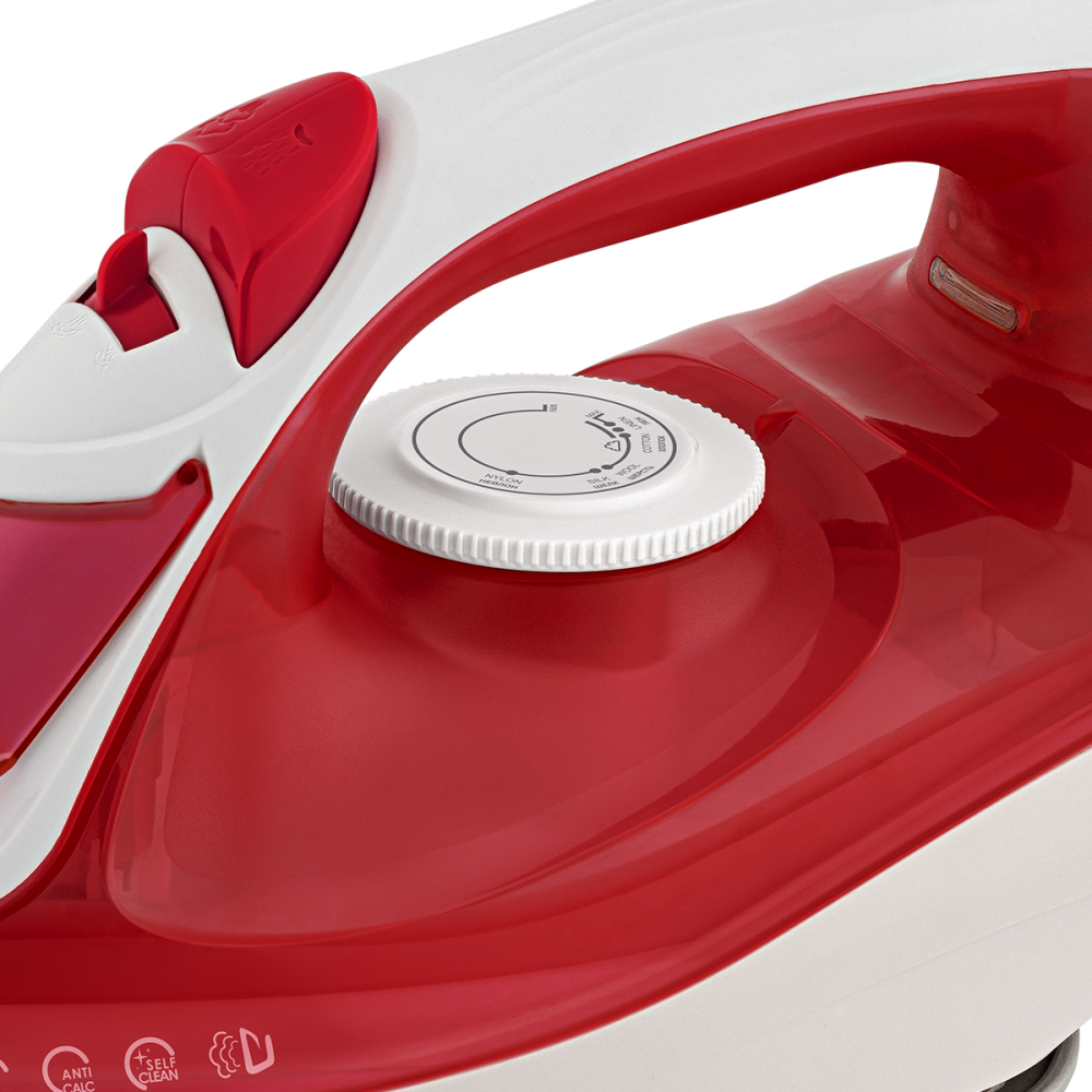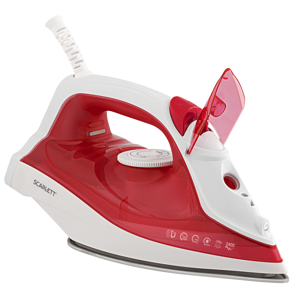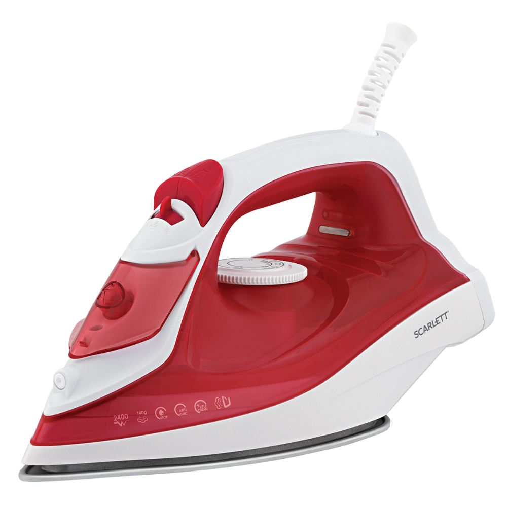 Утюг Scarlett SC-SI30P18 с пластиковым корпусом красного цвета снабжен идеально гладкой подошвой с антипригарным покрытием SimplePro, которая надолго сохраняет цвет и внешний вид ткани.