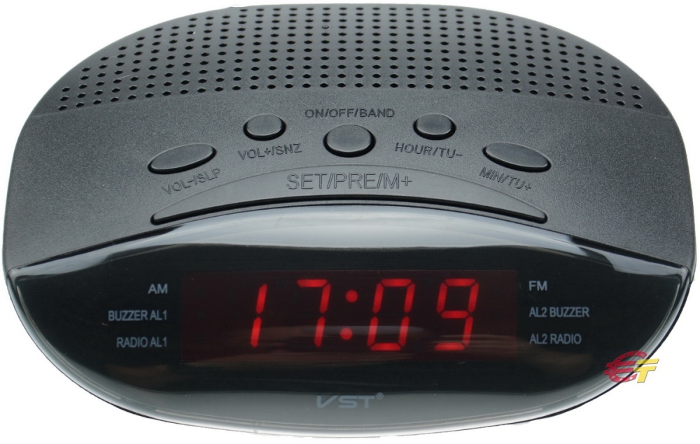 FM/AM радио, LED дисплеей, будильник и функция отсрочки, выбор мелодии будильника, габаритные размеры: 130х118х30 мм