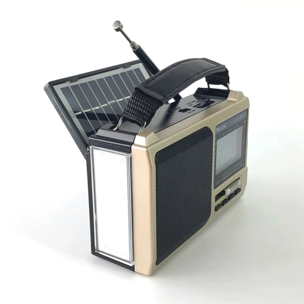 Радіо GOLON RX366S є інноваційним пристроєм, що поєднує в собі функціональність традиційного радіоприймача з сучасними технологіями та сонячної зарядки. Цей радіоприймач забезпечує високу якість прийому сигналу та можливість прослуховування музики. Сонячна панель, що вбудовується, дозволяє заряджати пристрій від сонячної енергії, що робить його ідеальним варіантом для використання в походах або в умовах відсутності доступу до електромережі.