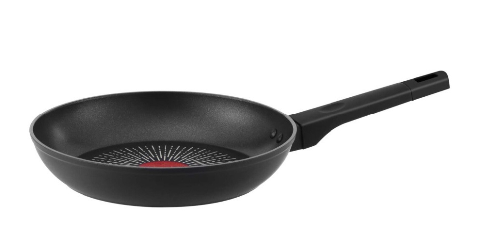 - Потовщений алюмінієвий корпус рівномірно розподіляє температуру по всій поверхні сковороди