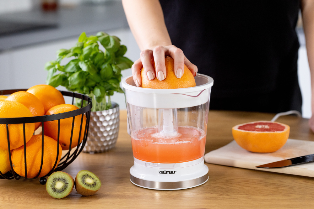 Тип: для цитрусів, потужність: 40 Вт, чаша: 1,0 л, два напрямки обертання, два розміри конусів, сховок для кабелю