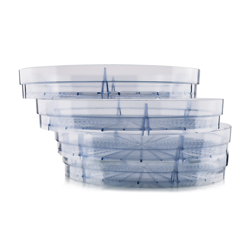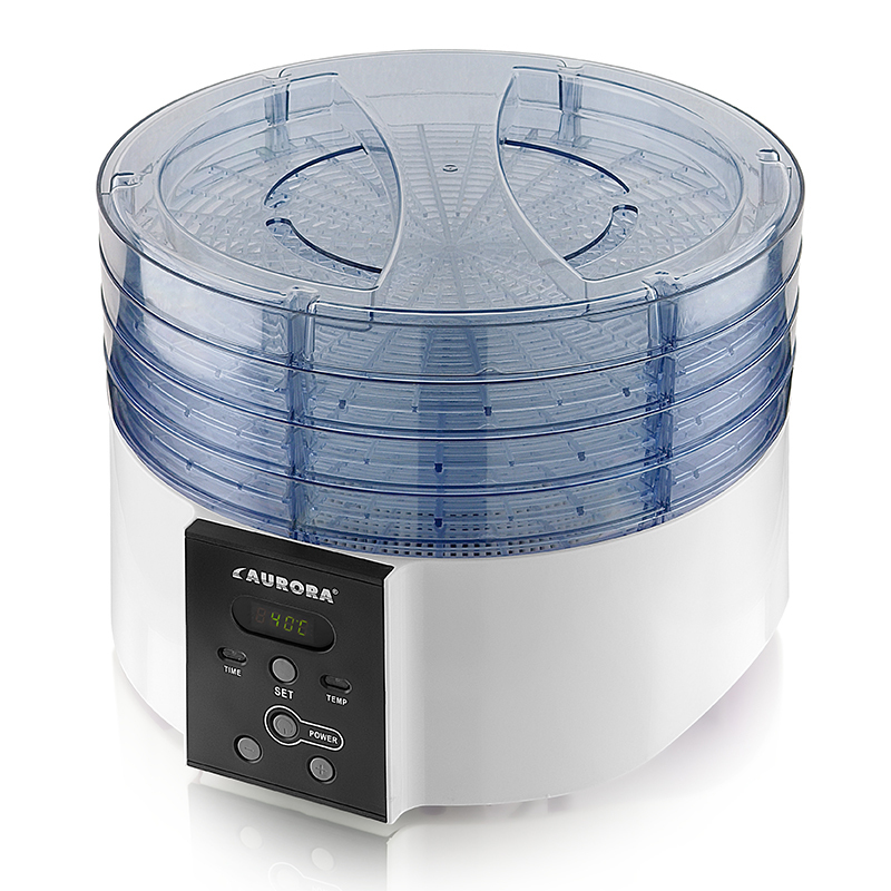 4 вместительных поддона позволяют обработать большое количество продуктов за один цикл. Поддоны и крышка выполнены из прочного прозрачного пластика, что дает возможность наблюдать и контролировать процесс.