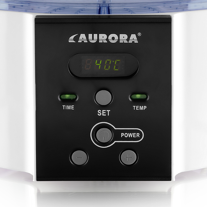Регулировка температуры от 40 до 70°С дает возможность установить температуру, необходимую для конкретного вида продуктов. Таймер с помощью звукового сигнала оповестит вас о завершении сушки.