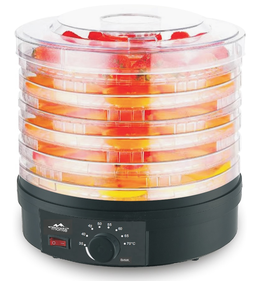 Тип управління: механічне, потужність: 400 Вт, 6 ярусів, діаметр: 28 см, регулятор температури 35-70 °С, захист від перегріву