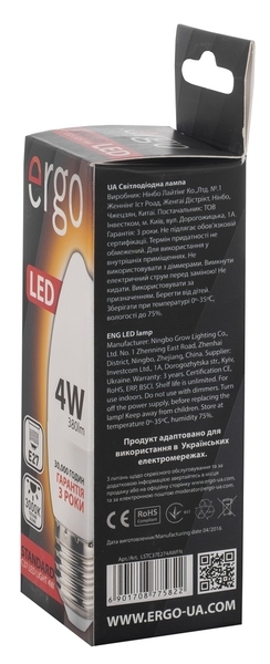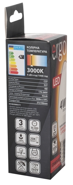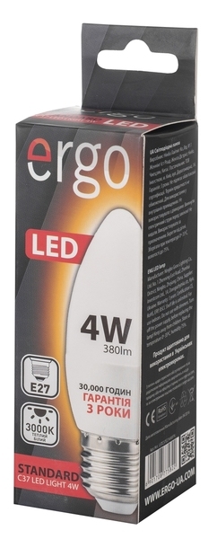 Светодиодная лампа Ergo Standard C37 E27 4W 220V 3000K Теплый Белый