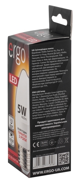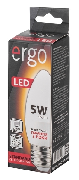 Светодиодная лампа Ergo Standard C37 E27 5W 220V 3000K Теплый Белый