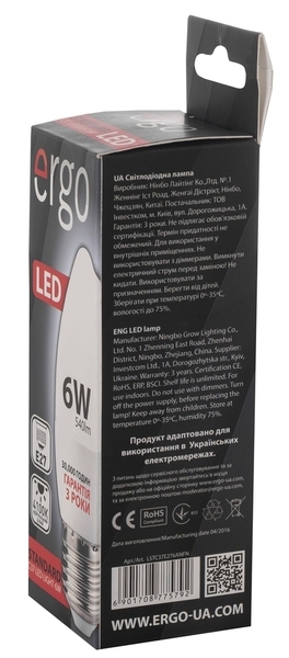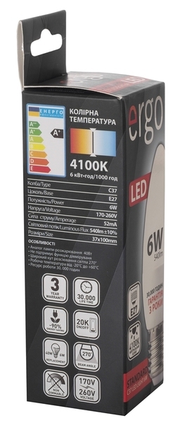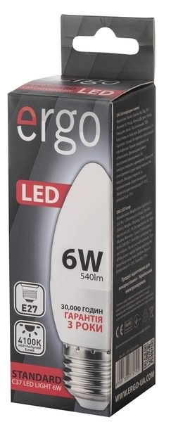 Светодиодная лампа Ergo Standard C37 E27 6W 220V 4100K Нейтральный Белый