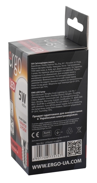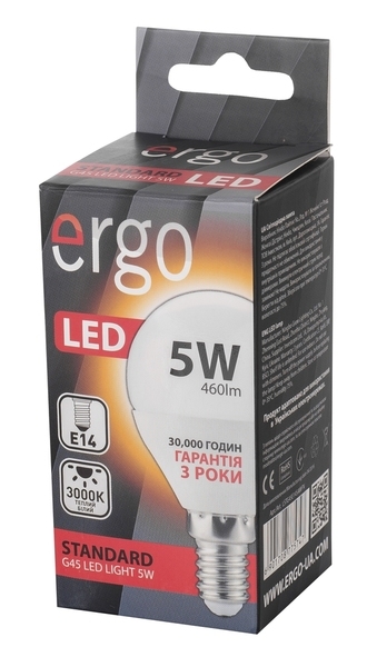 Светодиодная лампа Ergo Standard G45 E14 5W 220V 3000K Теплый Белый