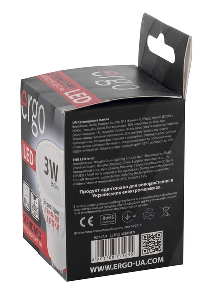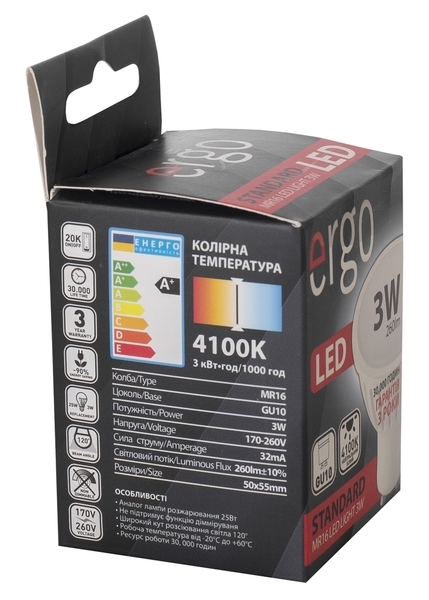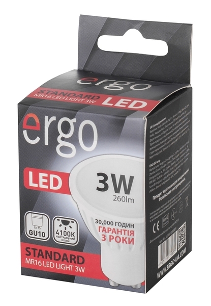 Светодиодная лампа Ergo Standard MR16 GU10 3W 220V 4100K Нейтральный Белый