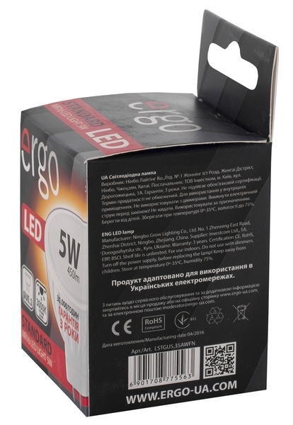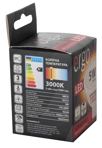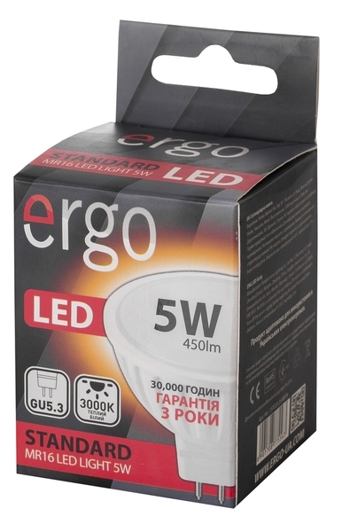 Светодиодная лампа Ergo Standard MR16 GU5.3 5W 220V 3000K Теплый Белый