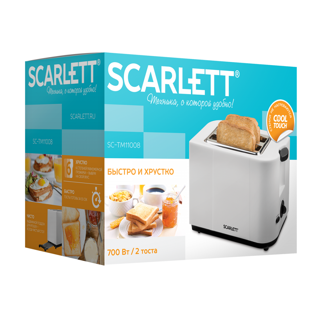 Тостер SC-TM11008 оснащен 6 степенями равномерной прожарки.