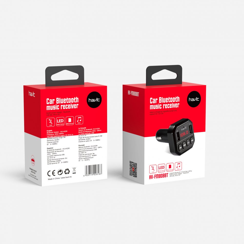 Компактный и легкий дизайн. Теперь вы можете наслаждаться прослушиванием того, что вы хотите. Bluetooth FM-передатчик позволяет осуществлять звонки в режиме громкой связи, слушать музыку, пользоваться голосовым GPS-навигатором. Синхронизация телефона с FM-передатчиком происходит через Bluetooth. Подключите устройство к прикуривателю автомобиля, переведите его в режим FM-радио и убедитесь, что передатчик частоты FM-сигнала совпадает с передатчиком автомобиля.