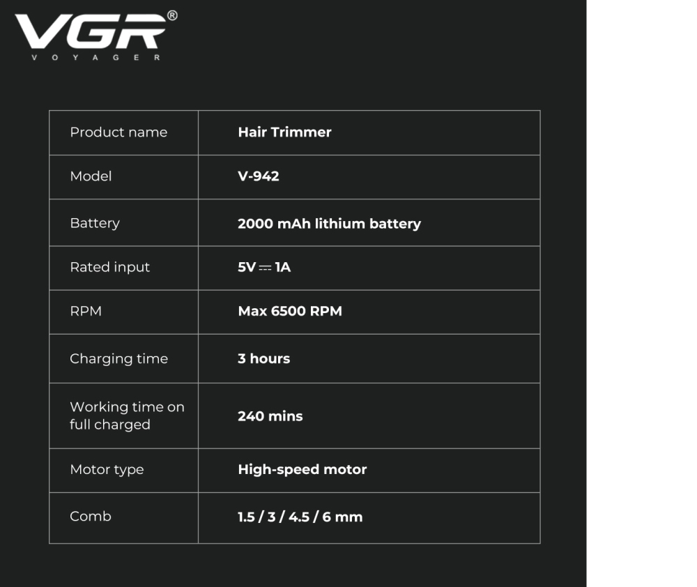 Тример VGR V-942, ви отримуєте надійного партнера для створення стильних зачісок найзручнішим і професійним способом!