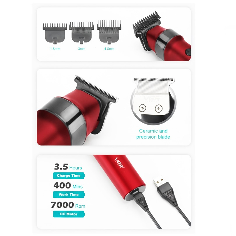 Тример VGR V-987 – це професійний прилад для стрижки волосся та догляду за бородою, призначений як для домашнього використання, так і для салонів краси. Він поєднує в собі сучасний дизайн, високу продуктивність та зручність експлуатації.
