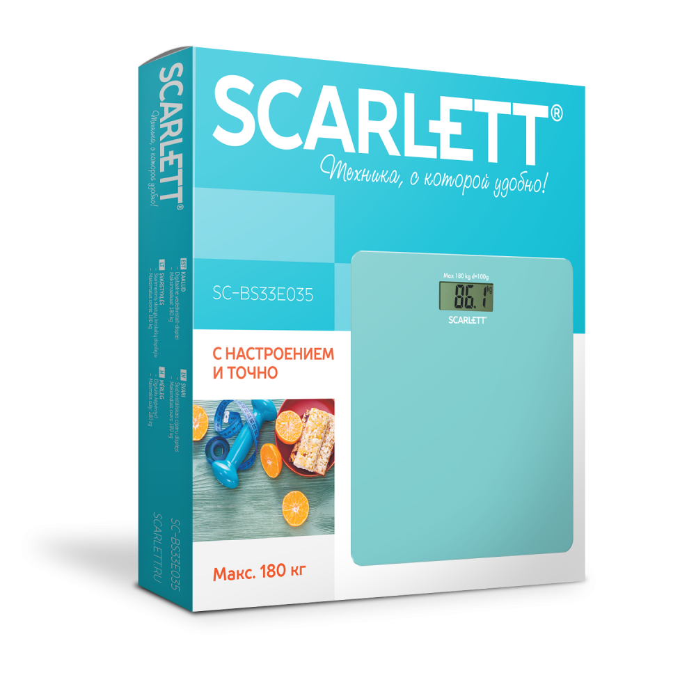 Напольные весы SC-BS33E035 - это простой и удобный способ контролировать свой вес! Благодаря высокочувствительным датчикам погрешность составит не более одной цены деления: 100 г. Максимальный вес: 180 кг. Ультратонкий дизайн обеспечит компактное хранение. Материал платформы - высокопрочное закаленное стекло. Автоматическое включение и выключение позаботятся об экономном расходе заряда батареи. Индикатор перегрузки и индикатор батарейки обеспечат комфортную эксплуатацию. Большой жидкокристаллический дисплей 45 x 28 мм делает эксплуатацию весов комфортнее. Прорезиненные ножки придают дополнительной устойчивости и предотвращают скольжение. А приятное цветовое решение позволит прибору не только вписаться в любой интерьер, но и радовать глаз каждый день!