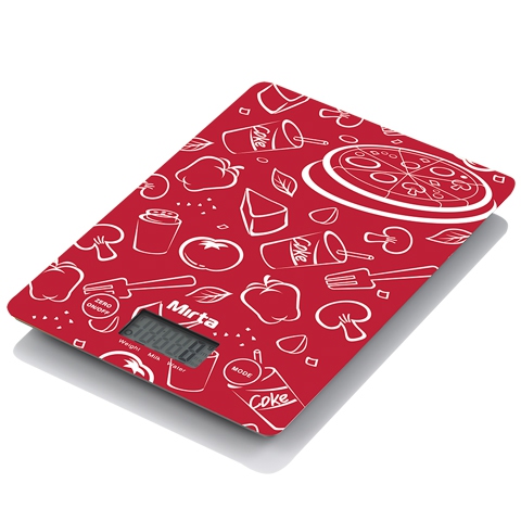 Кухонные весы Mirta SKE 305 R есть электронными с максимальным весом до 5 кг, точностью измерения 1г, измерения объема молока и воды, с LCD-дисплеем и сенсорным управлением, с функцией автоотключения, индикатор зарядки, имеет принцип крепления на стену, стеклянный корпус Цвет - бордовый с рисунком, гарантия 24 месяцев.