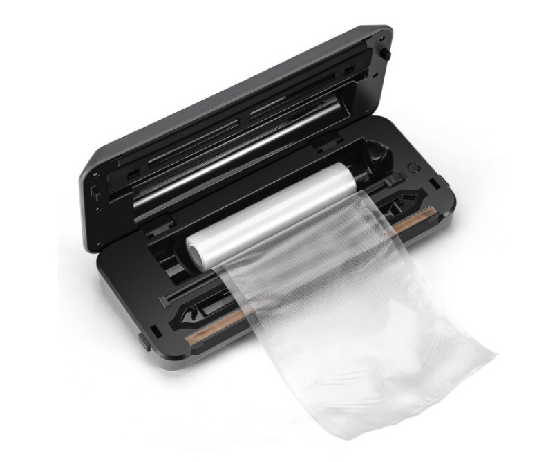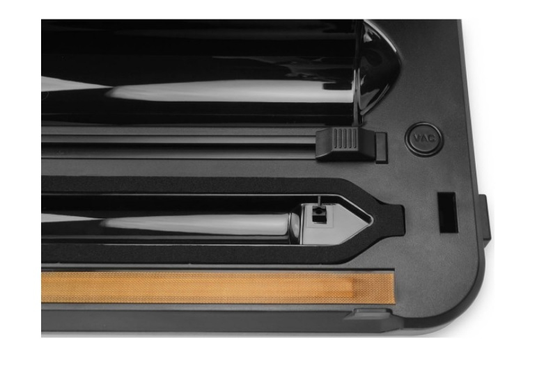 Чорний пластик та вставки із сатинованої нержавіючої сталі роблять корпус вакууматора привабливим і практичним, адже на ньому майже не лишаються відбитки пальців.