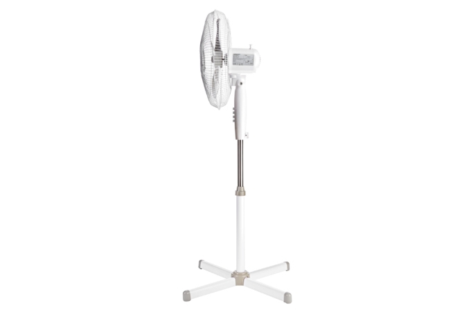 Діаметр лопатей досягає 40 см, а для безпеки використовується посилена конструкція захисної решітки. Надійне встановлення забезпечує кругла опора діаметром 52 см У конструкції вентилятора передбачено регулювання нахилу в межах 90 градусів, а також регулювання за висотою — від 110 см до 125 см