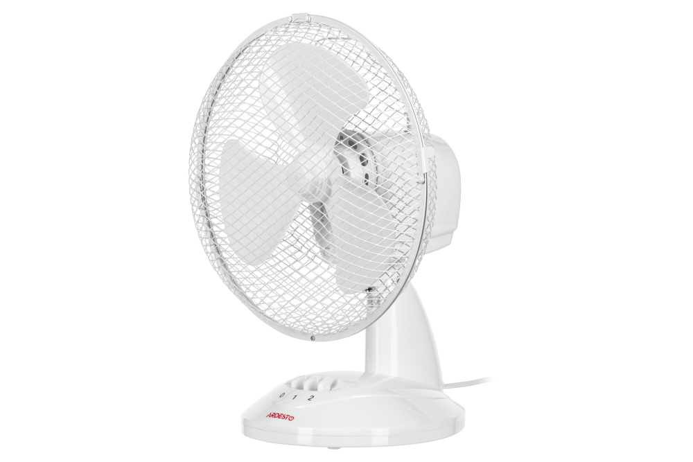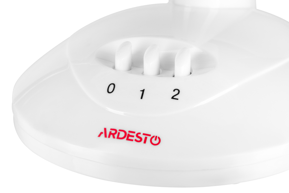 Настільний вентилятор ARDESTO FT-23A білого кольору на круглій опорі пасуватиме до будь-якого інтер’єру. Потужність вентилятора становить 30 Вт, а рівень шуму – 60 дБ. Керування механічне – за допомогою двох клавіш перемикання швидкості.