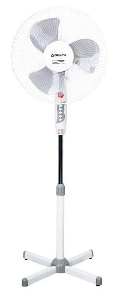 Підлоговий вентилятор DELFA DFS 1622 виконаний за класичною конструкцією: корпус з білого пластику із сірими вставками закріплений на висувну сталеву штангу та має можливість регулювання по висоті від 1100 до 1300 мм. Надійність цієї конструкції від падіння забезпечує хрестоподібна підставка 520 х 520 мм зі штампованої сталі, а металева сітка навколо лопатей роблять пристрої безпечними для маленьких дітей і тварин.