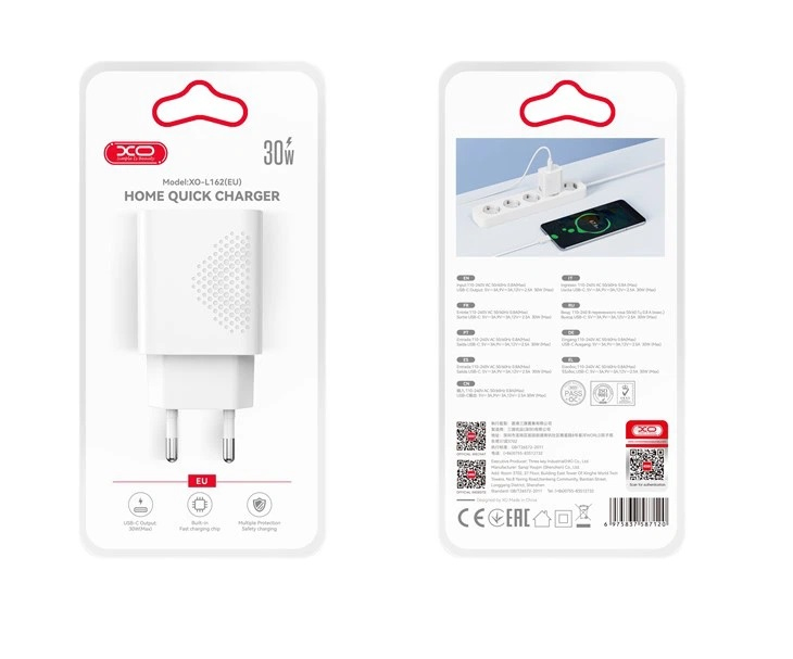 Зарядний пристрій з роз'ємом USB-С 30Вт 3А, стандарт зарядки: Power Delivery, Quick Charge 3.0.