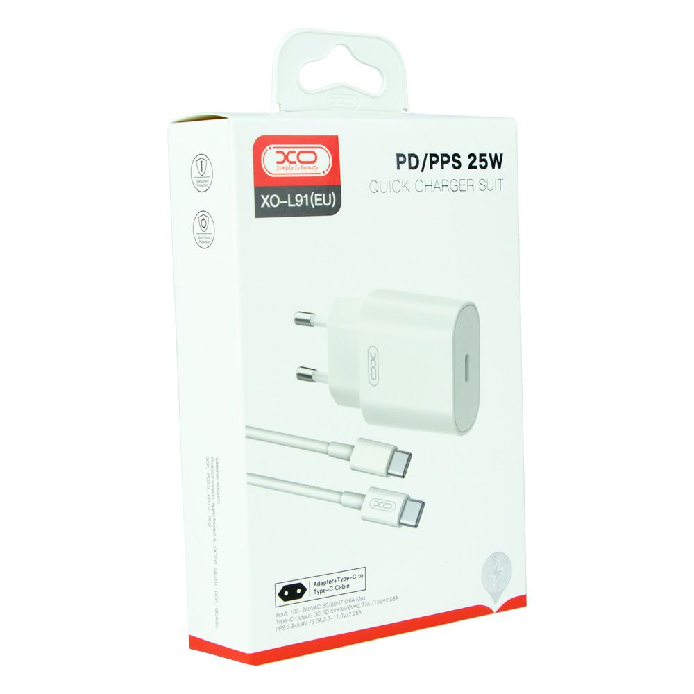 Опис Зарядний пристрій XO-L91 EU + Type-C 25W White