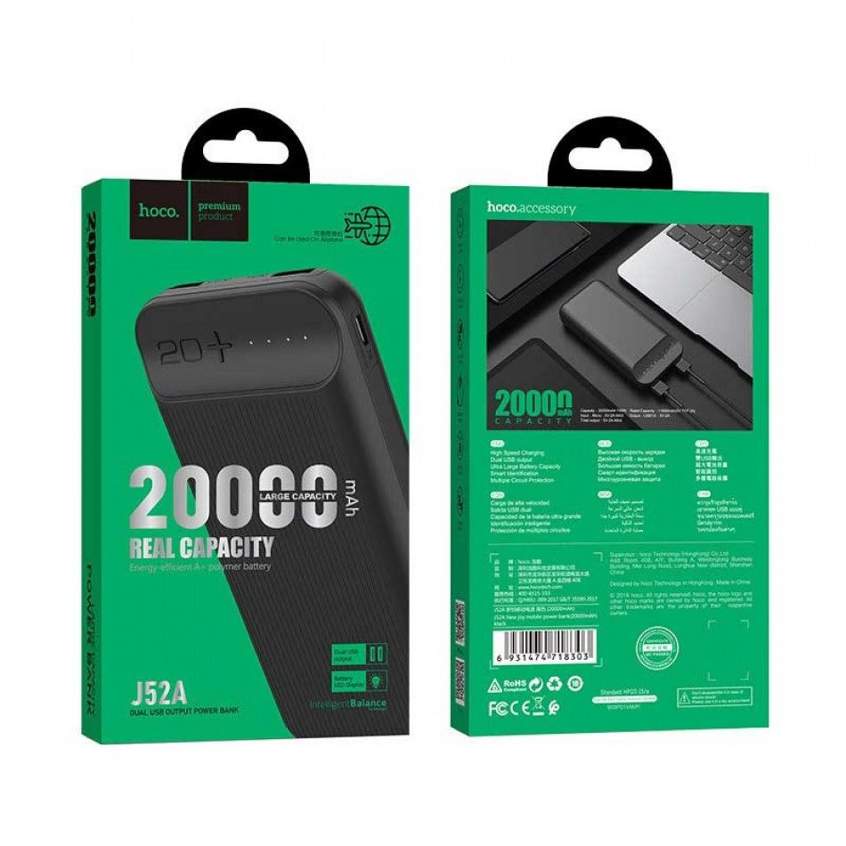 Зовнішній акумулятор Hoco J-52A 20 000 mAh Black - фото 2. Зовнішній акумулятор Hoco J-52A 20 000 mAh Black - фото 3. Зовнішній акумулятор Hoco J-52A 20 000 mAh Black - фото 4.