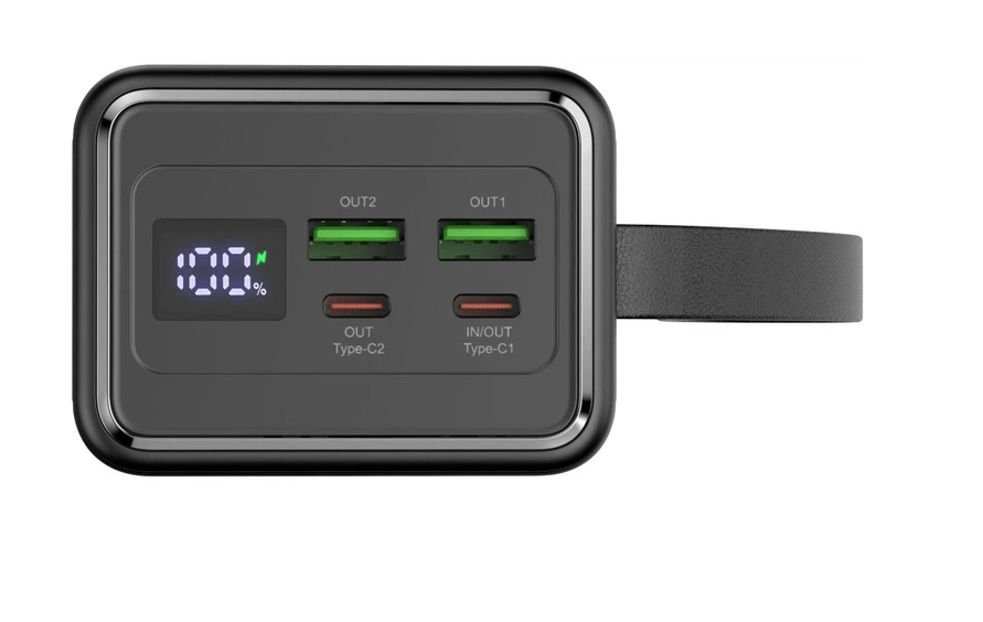 Він оснащений декількома вихідними портами, включаючи два стандартних порти USB-A, два порти Type-C, один з яких використовується для зарядки самого павербанка. Порти USB пропонують вихідну напругу 5 В/4,5 А, 5 В/3 А, 9 В/2 А та 12 В/1,5 А, а порт Type-C пропонує вихідну напругу 5 В/3 А, 9 В/3 А, 12 В/3 А, 15 В/3 А, 20 В/3,25 А (PD65W), що дозволяє швидко заряджати різноманітні пристрої.