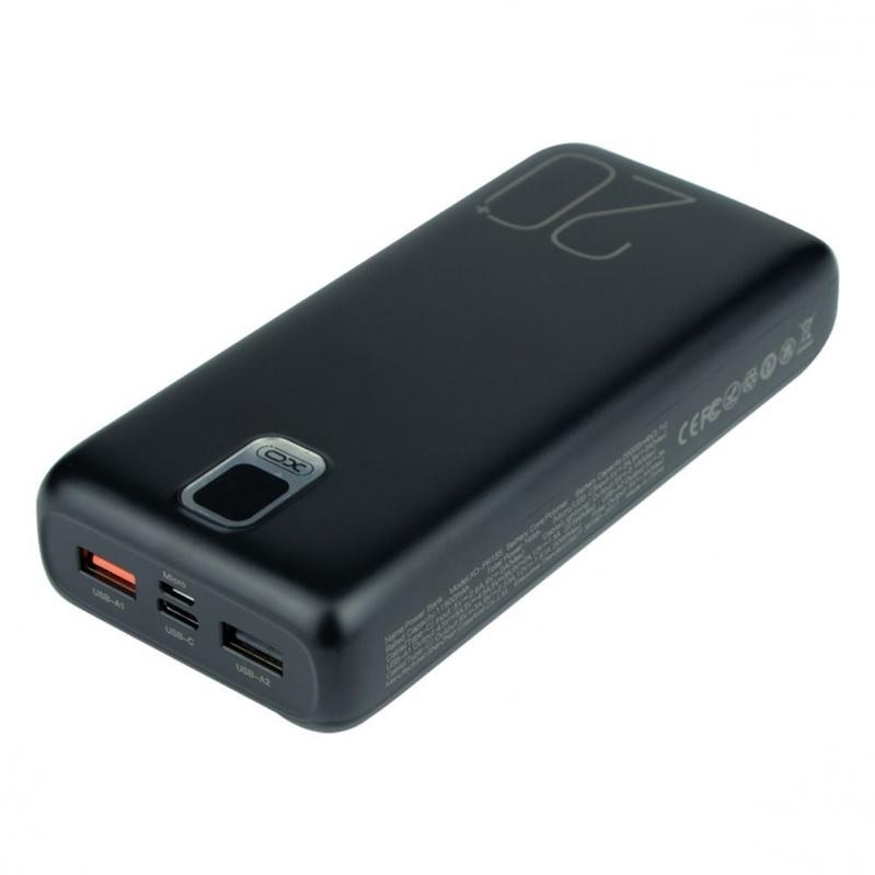 Зовнішній акумулятор XO PR185 – це практичний, високотехнологічний пристрій, який значно спростить зарядку сучасних портативних гаджетів. Аксесуар реалізований у стильному, ергономічному дизайні, має досить компактні розміри та невелику товщину. Його надійно зібраний корпус виконаний із заокругленими гранями та приємною на дотик поверхнею, яка запобігає випадковому вислизанню з рук, виготовлений із міцного, стійкого до ударів та подряпин пластику. Повербанк оснащений двома USB портами, роз'ємами Micro-USB і Type-C, двома плоскими кабелями, які фіксуються в слотах на задній панелі, один з яких має інтерфейс Lightning, а другий - Type-C. Визначити рівень заряду вбудованої батареї ємністю 20000mAh допоможуть LED дисплей та кнопка, а зарядити її – кабелі та роз'єм Micro-USB. Кабель з інтерфейсом Type-C підтримує швидку двосторонню зарядку, зарядку за протоколом PD з максимальною потужністю на виході 20Вт, а один із USB портів - протокол QC з максимальною вихідною потужністю 22.5Вт.