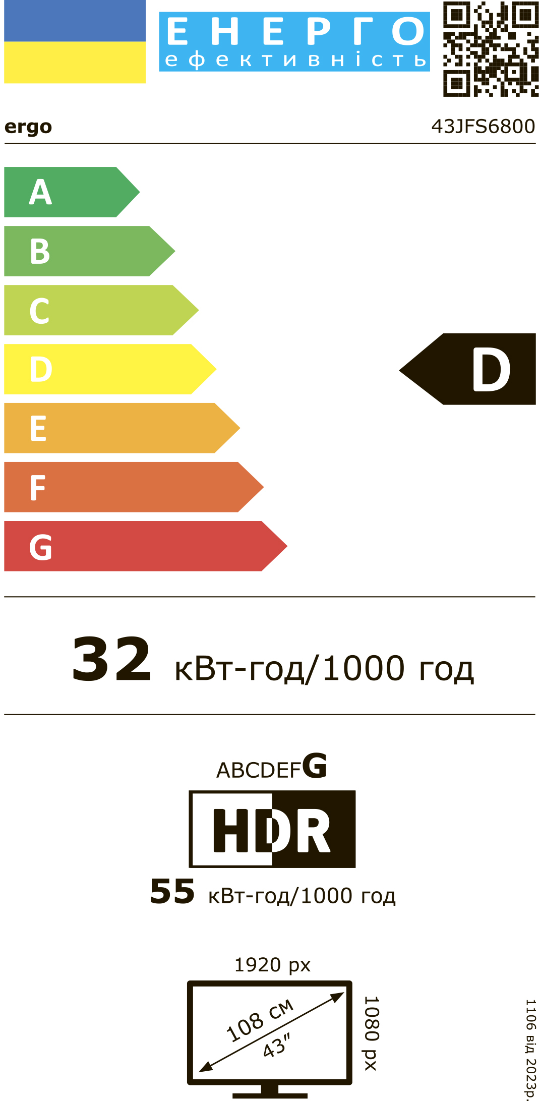 Smart телевізор Ergo 43GFS6500