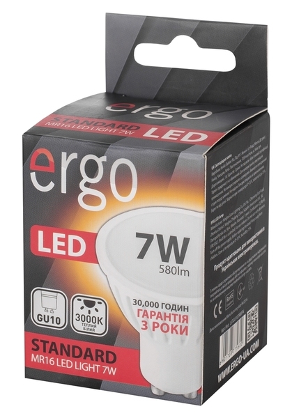 Світлодіодна лампа Ergo Standard MR16 GU10 7W 220V 3000K Теплий Білий