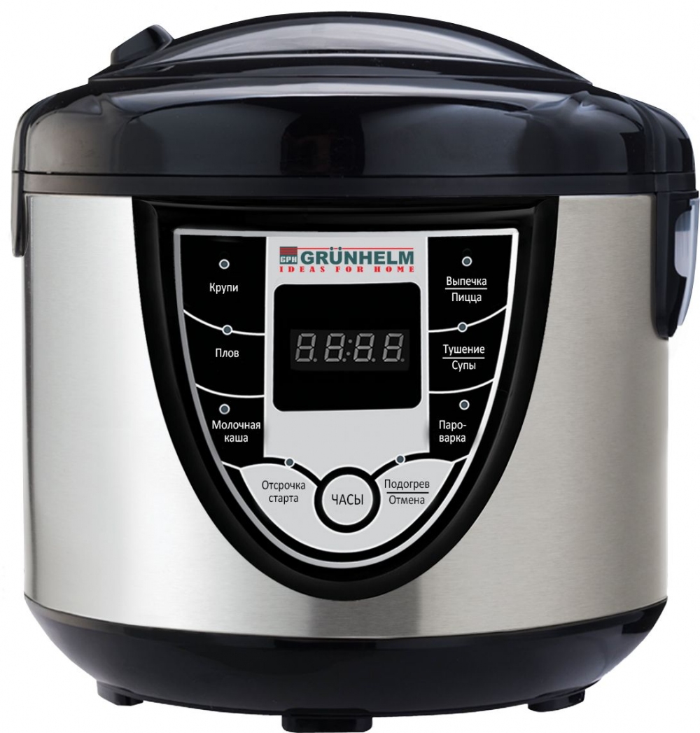 В мультиварці Grunhelm MC-6SB реалізовано 8 автоматичних програм, які дозволяють жарити, варити каші, супи, плов, овощі, рибу, м'ясо, готувати на пару, тушкувати, випікати, готувати десерти та багато іншого. Компактна та легка мультиварка не займе багато місця на Вашій кухні. Grunhelm MC-6SB обладнана чашею об'ємом 5 л з антипригарним покриттям, 8 автоматичними програмами, відтермінуванням старту до 24 год, режимом підтримання температури до 24 год, зручною герметичною кришкою та відсіком для збору конденсату.