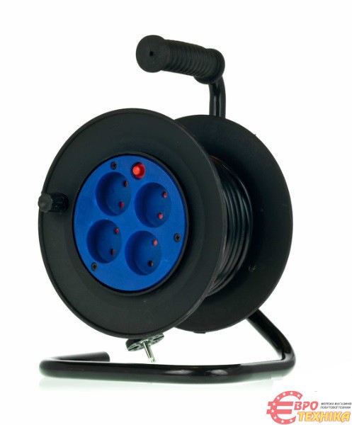 Подовжувач на котушці, довжина шнура 10 м, 4 розетки, максимальний струм 15А