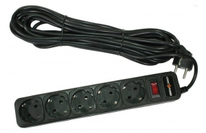 Довжина шнура 10 м, 5 розеток, вимикач зі світлодіодною індикацією, автоматичний запобіжник 10А, захист від короткого замикання та імпульсних перешкод