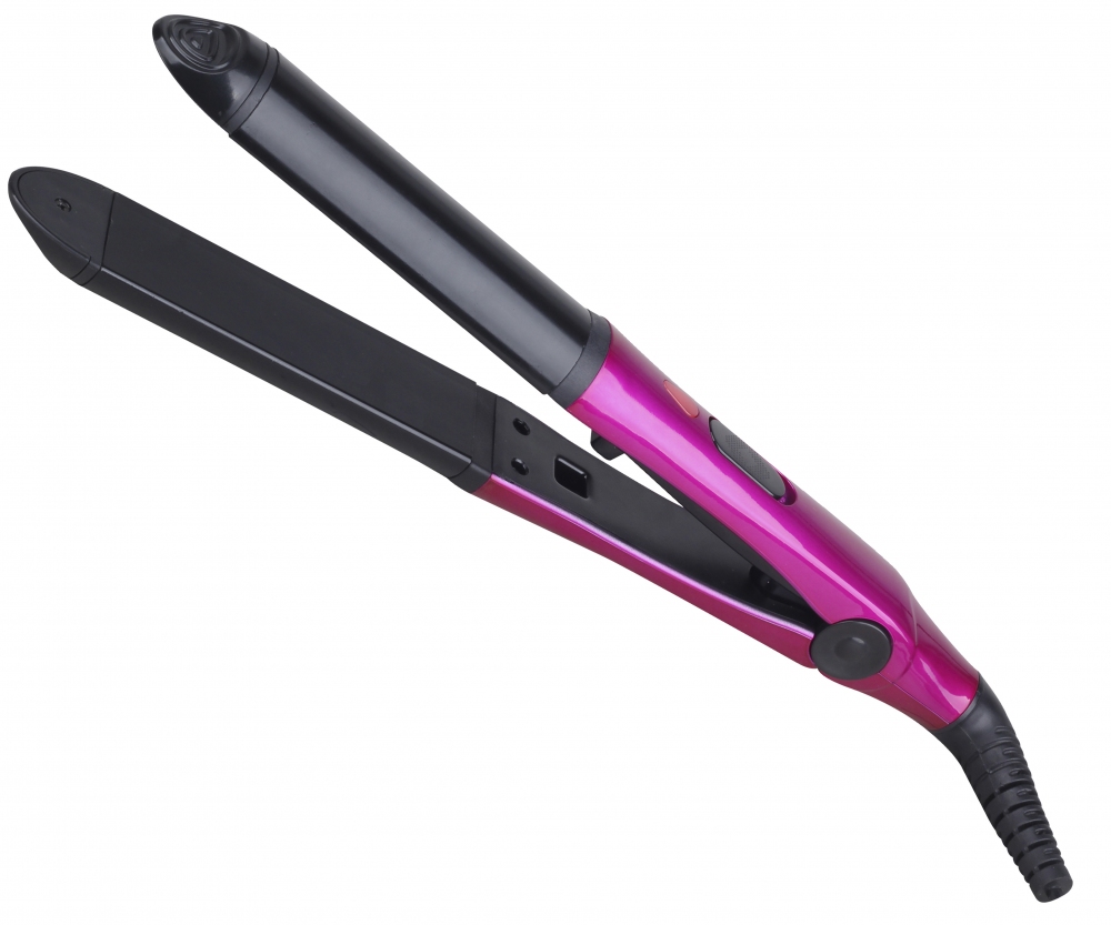 Потужність 55 Вт, керамічне покриття нагрівальних пластин, кнопка виключення, індикатор роботи, функція плойки та вирівнювача