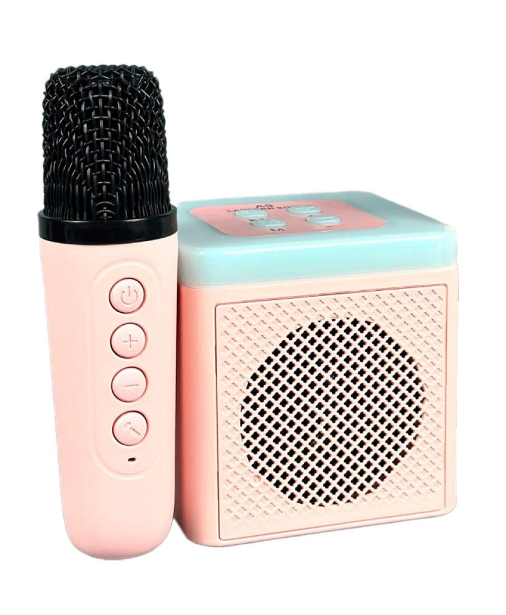 Акустика з караоке, вихідна потужність 3 Вт, розмір динаміка: 57 мм, сумісність з Bluetooth, час роботи: 1,5 год, ємність акумулятора: 500 mAh, підсвічування: RGB, в комплекті: мікрофон.