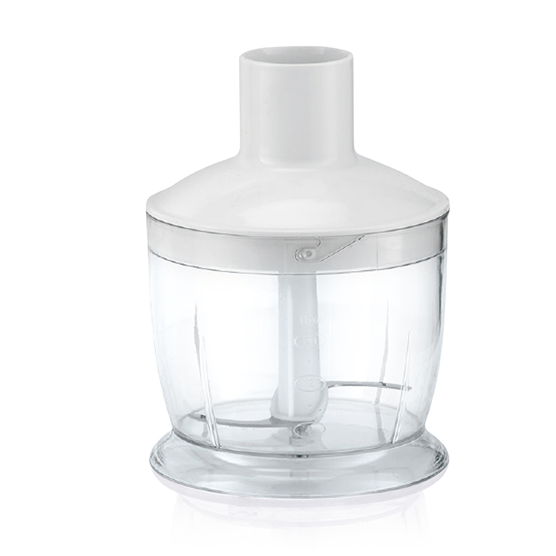 Чаша-подрібнювач об'ємом 600 мл підходить для подрібнення м'яса, твердого сиру, цибулі, часнику, зелені, горіхів або твердих овочів.