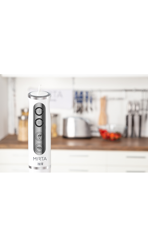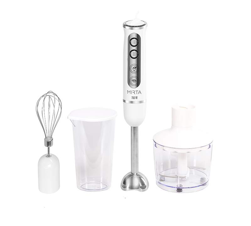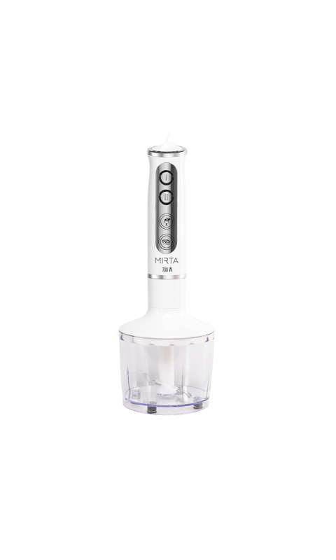 Потужність 700 Вт, 15 швидкостей, матеріал ніжки - нержавіюча сталь, чаша-подрібнювач - 0.6 л, насадка-вінчик, мірний стакан - 0.6 л, захист від розбризкування, петелька для підвішування