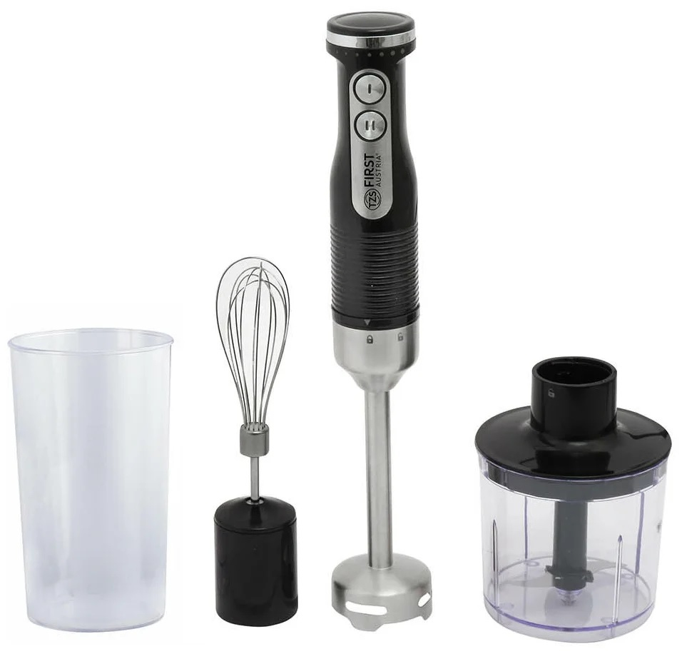 Блендер First FA-5273-5, Black, 600W, занурювальний, 2 швидкості, ємність 450мл, насадка-віночок, насадка-подрібнювач.