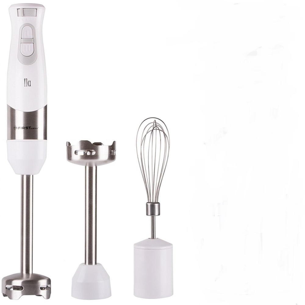 Багатофункціональний блендер FIRST FA-5273-2 може похвалитися інтуїтивно зрозумілою системою керування механічного типу. Ручка пристрою виготовлена з високоякісного пластику та не вислизає з рук. Занурювальна частина електроприладу виготовлена з нержавіючої сталі, що гарантує тривалий термін її служби. Використовуйте міні-подрібнювач ємністю 0.7 л для ефективного дроблення зелені та овочів, сухофруктів, різних сортів горіхів, сирної продукції та м'яса. У кухонний набір також включено мірну чашу з кількома шкалами для різних продуктів. Готуйте неймовірні соуси, підливки та суп-пюре за допомогою використання блендера.