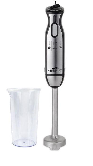 Ручний блендер Monte MT-1916 - ідеальний баланс потужності та функціональності для вашої кухні. Забезпечує чудову продуктивність завдяки потужності в 1000, що дозволяє справлятися будь-якими завданнями змішування та подрібнення. Легко очищується та запобігає розбризкуванню під час роботи, забезпечуючи безпеку та чистоту.