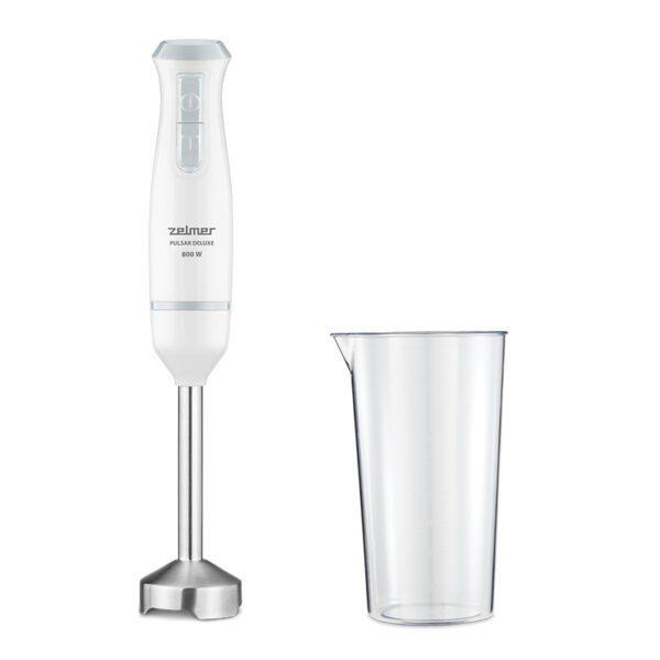Кухонний блендер для подрібнення овочів або фруктів, приготування крем-супів або смузі. В комплекті зручна мірна чаша об’ємом 800 мл, яку можна використовувати для подрібнення продуктів, не побоюючись розбризкування. У блендері встановлена ​​металева ніжка, що робить його використання довговічним. Для максимально швидкого подрібнення продуктів передбачений Турбо-режим.