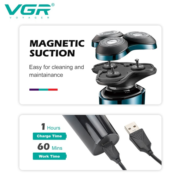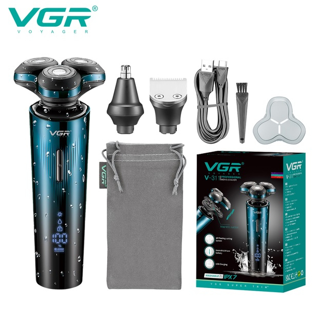лектробритва VGR V-303 3 в 1 — це універсальний пристрій для догляду за чоловічою зовнішністю, що поєднує функції бритви, триммера для носа та вух, а також триммера для бороди. Завдяки трьом бриючим головкам та водонепроникному корпусу з класом захисту IPX7, вона забезпечує ефективне та комфортне гоління як сухим, так і вологим способом.